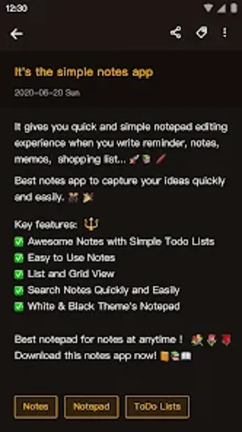 One of the key features of Notes is the ability to switch between list and grid views, allowing users to customize their note-taking experience. The app also offers a white and black theme option, making it easy on the eyes in any lighting. Users can create notes with to-do lists and easily search for them using the quick search feature. Notes is a great tool to manage schedules and notes on the go.